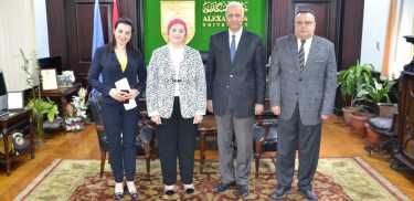 أستقبل الدكتور عصام الكردى رئيس جامعة الإسكندرية صباح اليوم السبت، الدكتور ياو تسي منج، نائب مدير العلاقات الدولية بجامعة شنغهاي الصينية، بهدف التعاون فى إنشاء معهد كونفوشيوس بجامعة الإسكندرية ليصبح مركزاً يتضمن أنشطة وفعاليات متعددة.